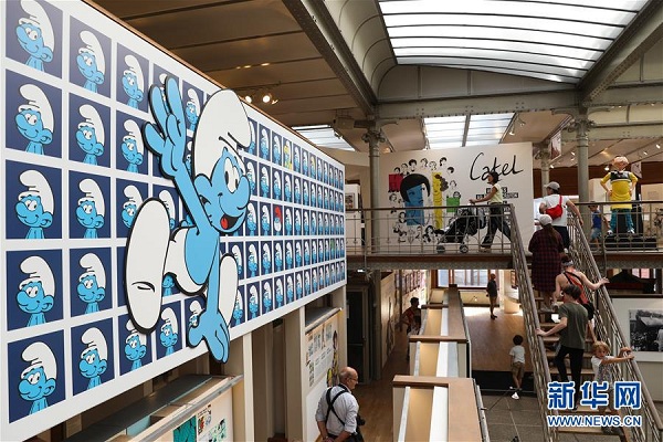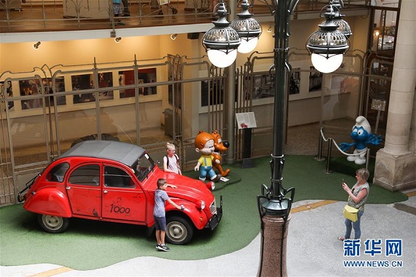 8月12日,在比利时首都布鲁塞尔,游客参观比利时漫画博物馆。 新华社记者郑焕松摄